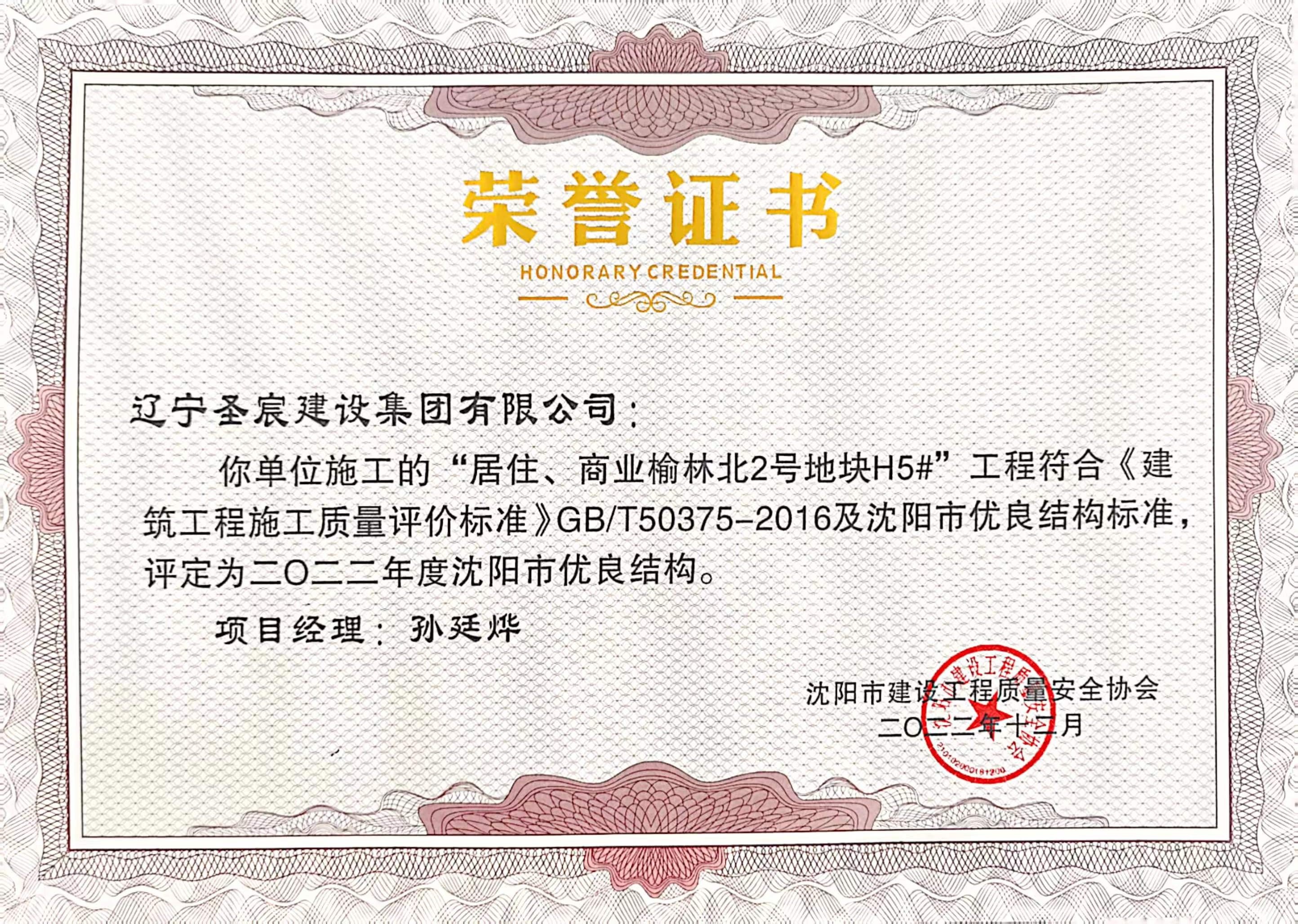 2022年度沈陽市優(yōu)良結(jié)構(gòu)-居住、商業(yè)榆林北2號地塊H5#工程