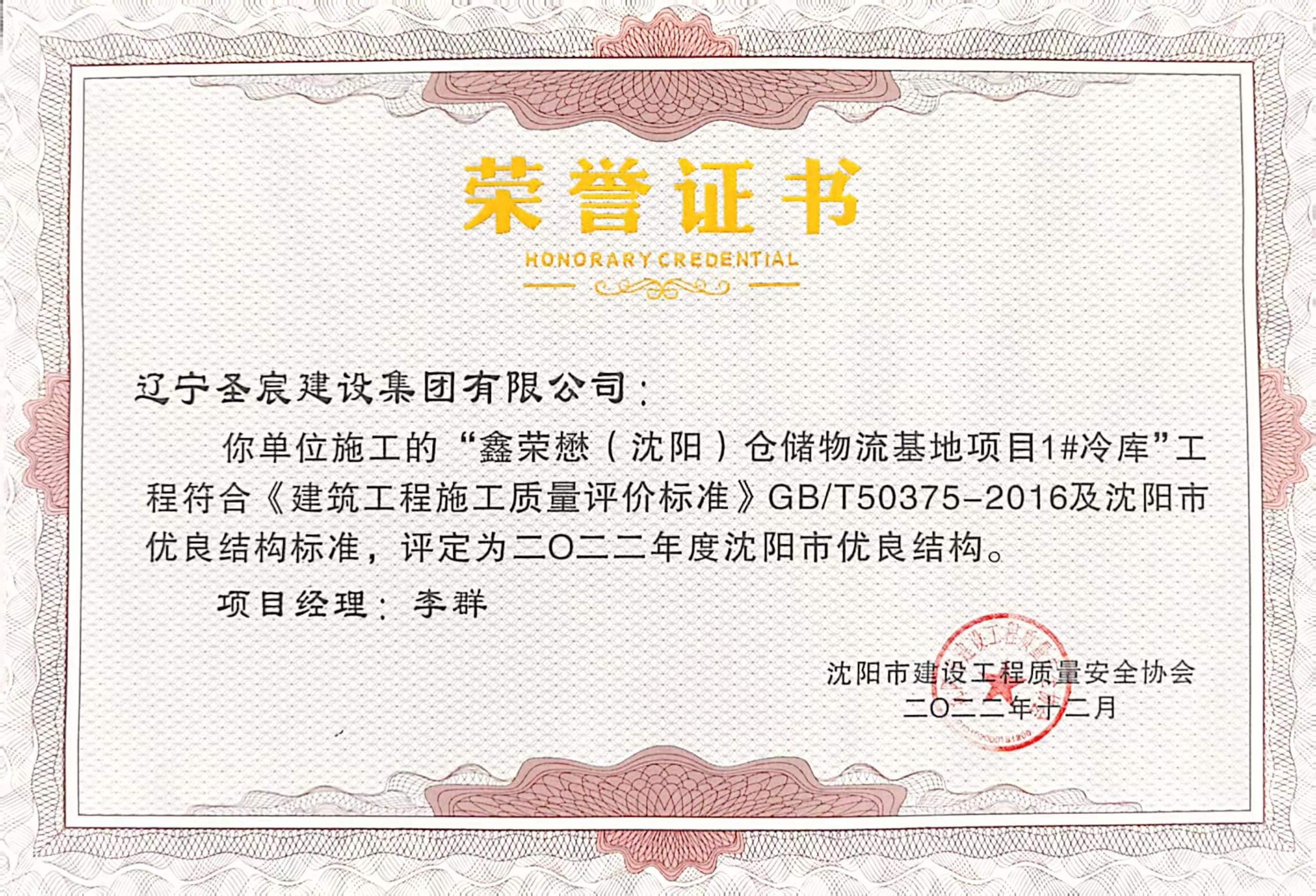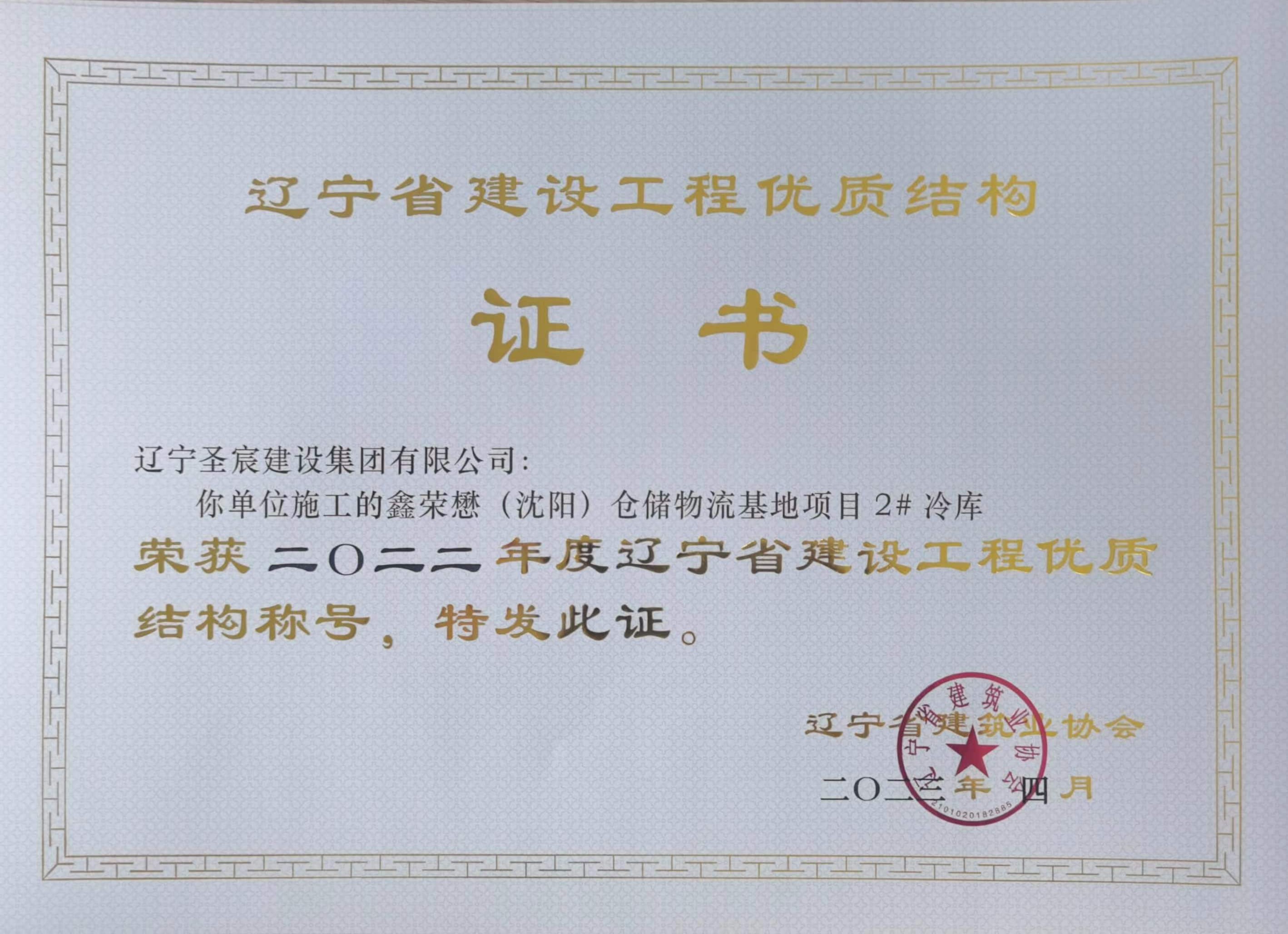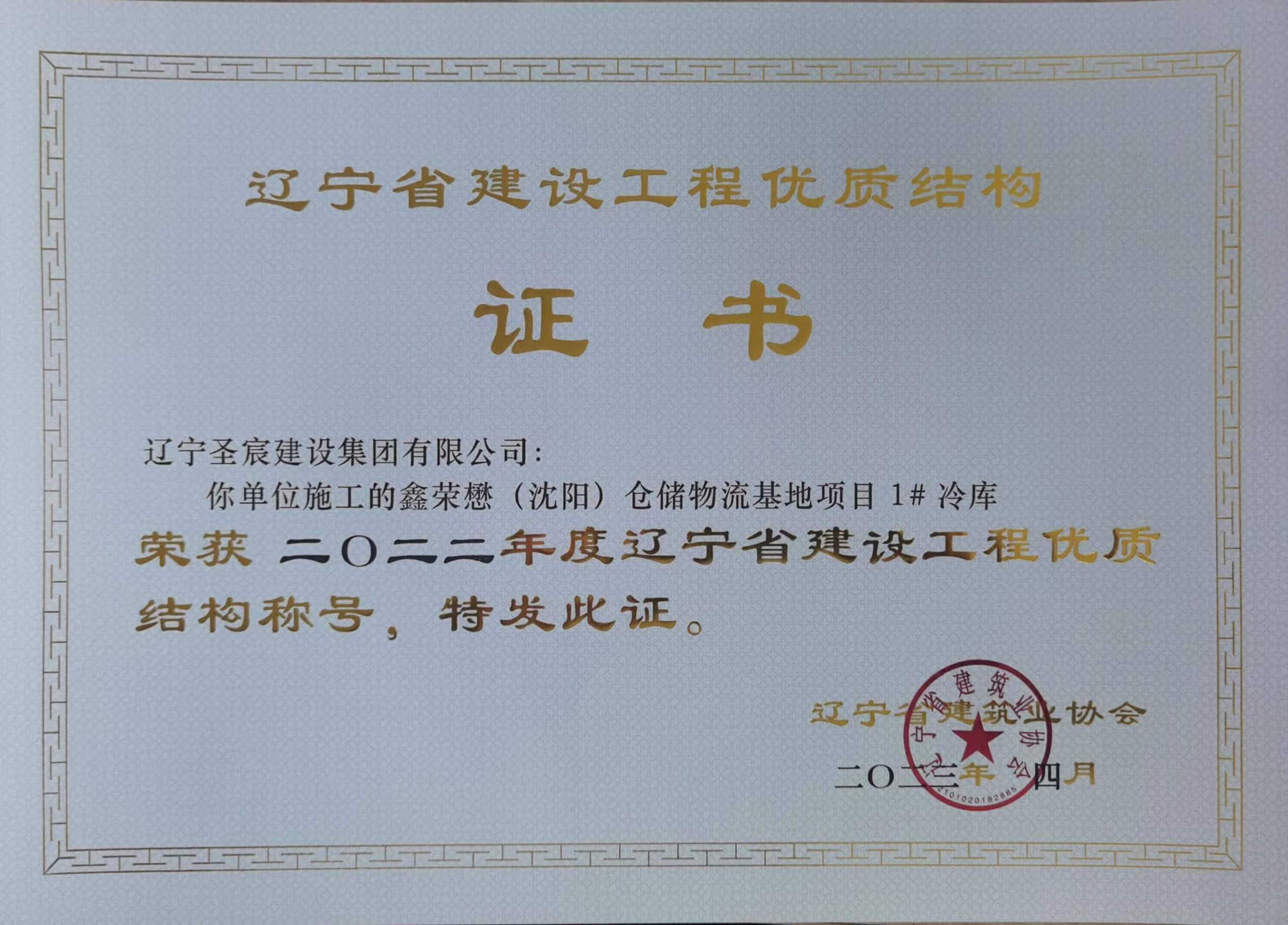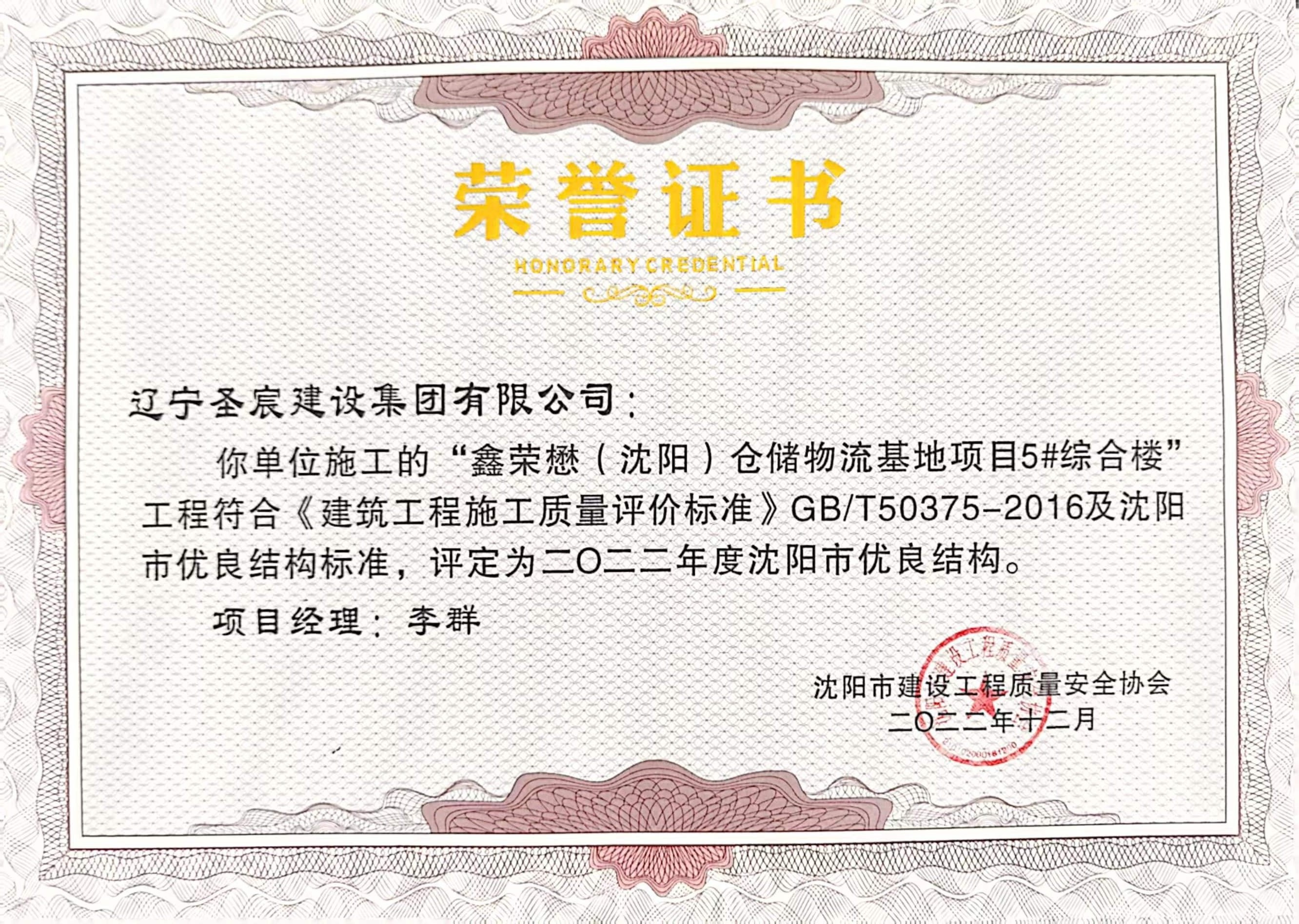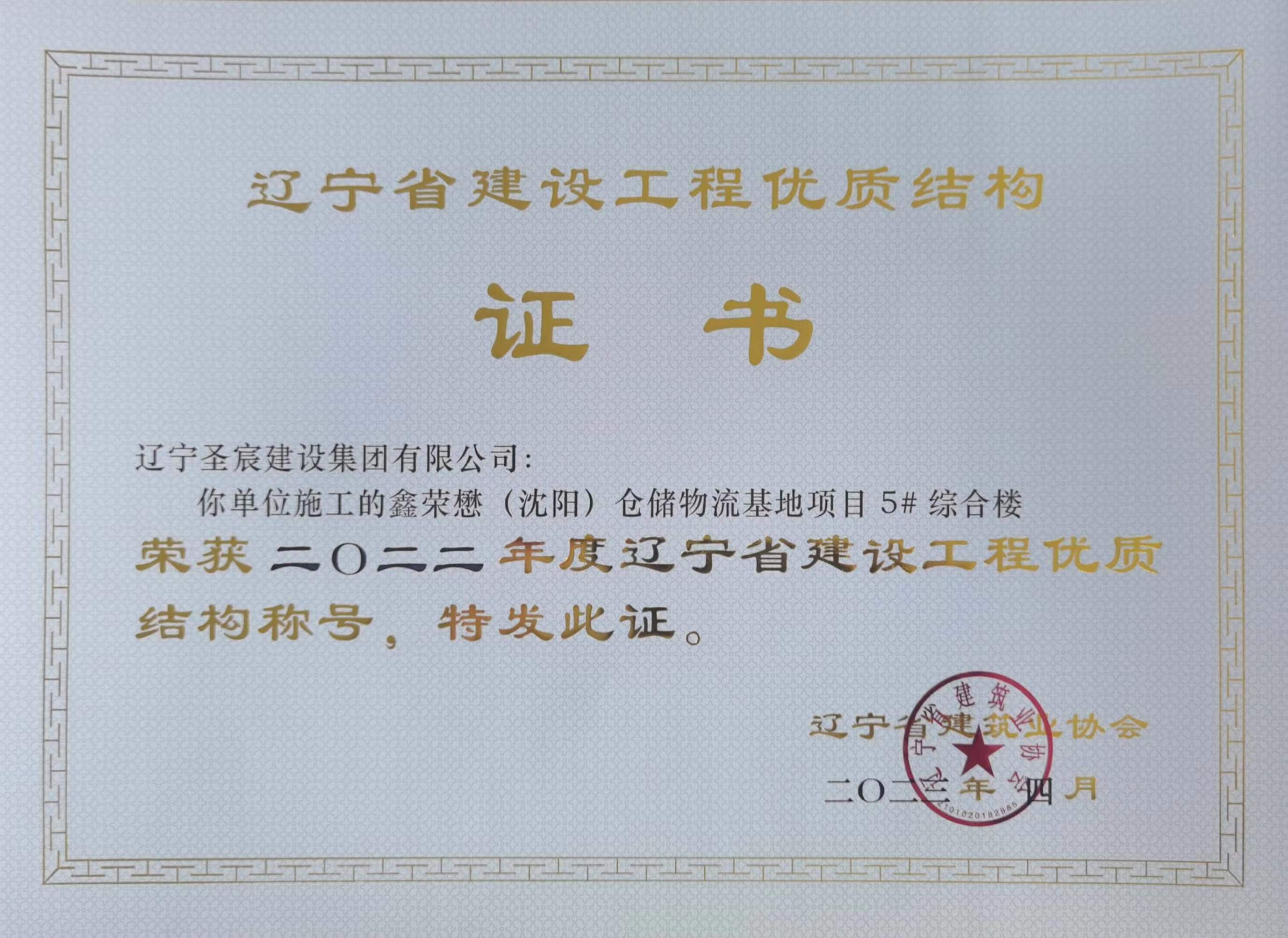2022年度遼寧省建設工程優(yōu)質(zhì)結(jié)構(gòu)-鑫榮懋(沈陽)倉儲冷鏈物流基地項目5#綜合樓